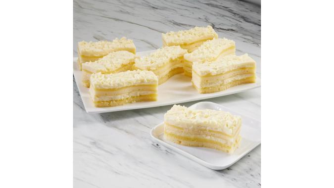 This limoncello cake layers ladyfingers soaked in lemon syrup with white chocolate mousse and a glossy lemon curd that adds just the right amount of sparkle. The eight pre-cut slices look polished thanks to the white chocolate shavings on top, which gives it a clear special-occasion feel. Light, citrusy and gently indulgent, it is the type of dessert that tends to disappear once people have their first taste.