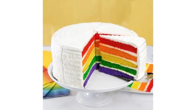 This rainbow cake delivers a cheerful burst of color with five bright layers tucked beneath light vanilla icing. The first slice reveals a vivid stripe pattern that will delight both kids and adults, which makes it a natural centerpiece for festive gatherings. The cake stays soft and moist with a sweetness that does not overwhelm the palate. At 10 inches, it offers plenty to share, which makes it a reliable option for celebrations of all sizes.