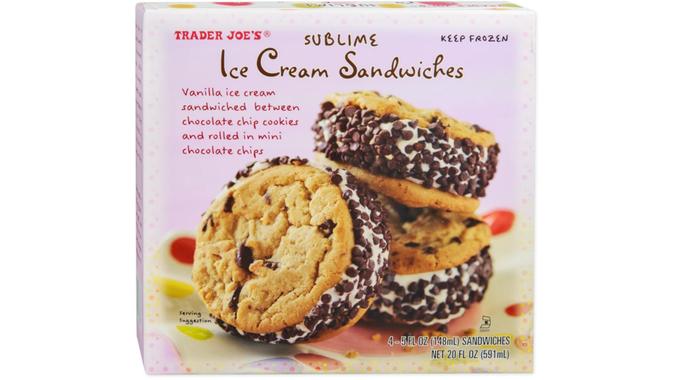 Rated by Trader Joe’s customers as the No. 1 sweet treat this year, the sublime ice cream sandwiches take traditional cookie ice cream sandwiches to the next level. Chewy cookies, fresh vanilla ice cream, rolled in copious amounts of chocolate chips? Yes, please!