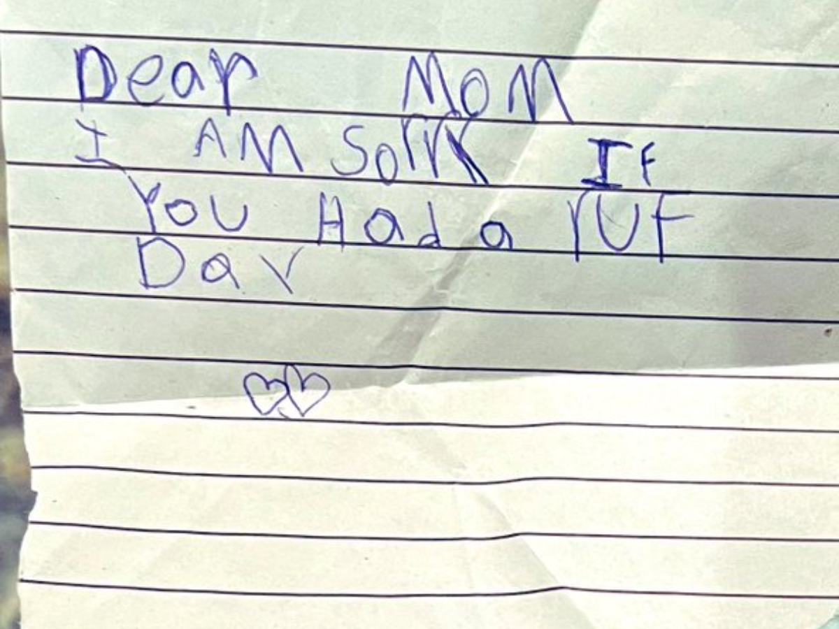"Dear mom, I am sorry if you had a rough day," the note reads with two heart emojis.