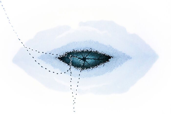 "This photo was taken from a bird’s-eye view using a drone and shows a frozen lake in my hometown of Rybnik. I have been photographing this motif for several years, always awaiting with fascination the moment when nature creates unique forms, and it never fails to surprise me. This time, I noticed something reminiscent of a third eye. I often trust my intuition and begin taking photos in places where it leads me. This occasion was no different, as I could not predict what I would see when I lifted the drone into the air. I am aware that nature will likely never again create such a form from snow and ice. This photo is part of the series Last Winter, which I created earlier this year. I know that the winters I remember from childhood, frosty and white, are becoming less and less frequent. Snow in the city is now a fleeting, almost ephemeral phenomenon. So when the right conditions finally arrive and I go out flying, I feel as though I am documenting a vanishing beauty."