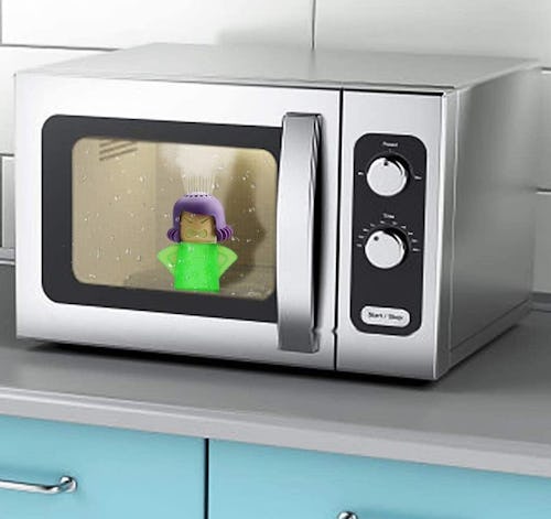 Simply fill this "angry mama" microwave cleaner up with a blend of vinegar and water, and then pop her into the microwave for about five minutes. Steam will begin to erupt out of her head, loosening up any baked-on food inside so that you can easily wipe it off with a paper towel.