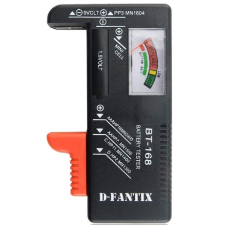 Regardless of which batteries you're using, this gadget can tell you how much power is left inside them. It's designed to work with most batteries and it doesn't even require any power to operate. Simply plug your battery inside, then watch as the meter rises to either good, low, or replace.