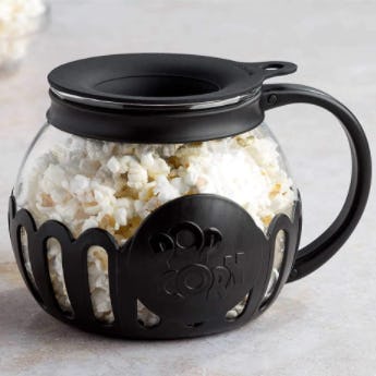 Don't have enough space in your kitchen for a bulky air popper? You can still enjoy freshly-popped kernels using this container. It's made from tough borosilicate glass that can hold up against heat — and it even doubles as a regular bowl for snacks, soups, and more.