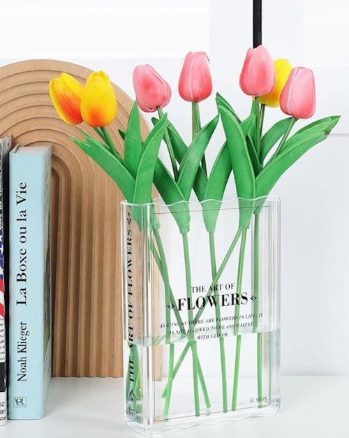 Calling all book lovers: this vase is about to change the way you store flowers because it’s shaped like a book and slides right into your bookshelf like the newest addition to your TBR. Made of water-tight acrylic, the vase can hold faux or fresh flowers, and it’s transparent so you can see the stems and leaves inside.