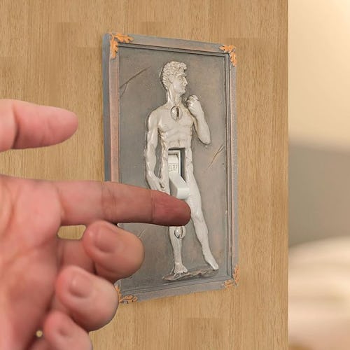 This light switch cover has a raised depiction of Michelangelo’s David on it so you can switch the light on and off... creatively. Adding fun and whimsy to your space, this light switch is made of polyresin and installs really easily onto any standard single toggle light switch plate.