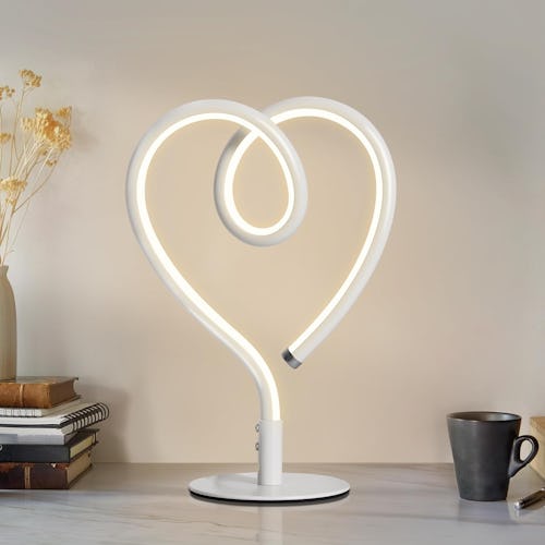 This table lamp has an aluminum frame shaped like a heart that lets off a warm white glow to elevate your space and be gentle on your eyes. It has a slightly weighted stable base with a nonslip bottom. Measuring 12.2 inches tall, the light charges via ISB and has a button switch control that’s easy to use.