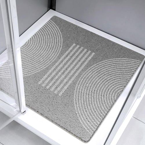 This shower mat has a loofah texture that feels great and exfoliating on your feet while remaining self-draining to ensure no water pools in the bottom of your drain. There are no suction cups that can be tricky to clean, instead it has a lattice nonslip backing that holds the mat firmly in place while you’re showering.