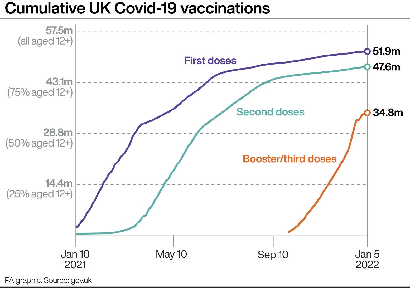 A total of 4,388,543 people have received their first dose of a Covid-19 vaccination, 4,037,434 have received a second dose, and 3,063,000 have received a third dose or booster.