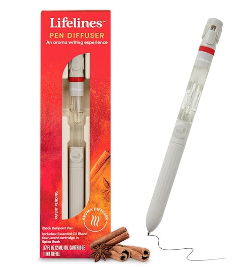Everyone around you will wonder where that soothing scent is coming from when you use this clever pen diffuser. It comes filled with the essential oil of your choice (spice rush, crisp mountain air, citrus grove, and more) and releases it as you write. You can also close the vent to use it as an ordinary pen.