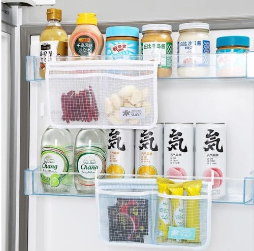 Imagine how much space you’ll free up once you’ve attached these refrigerator storage bags to your shelves. They’re just the right size to hold some fresh veggies, condiments, and more. And since they’re made of strong mesh, it won’t take long to find what you need. Four come in the set and each one has two pockets.