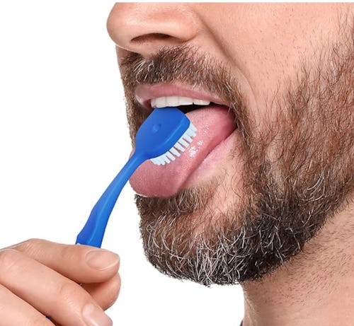 Using this tongue brush every day is just as important as reaching for your ordinary brush. Its bristles will remove 90% of the buildup that causes bad breath — they can even help enhance your sense of taste. The tool comes with a hygienic case for travel.