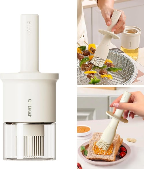 This oil dispenser will keep you from using too much thanks to its built-in brush. Its silicone bristles are heat resistant and can pass smoothly over veggies, bread, and more. Plus, the 10-ounce glass container is leakproof.
