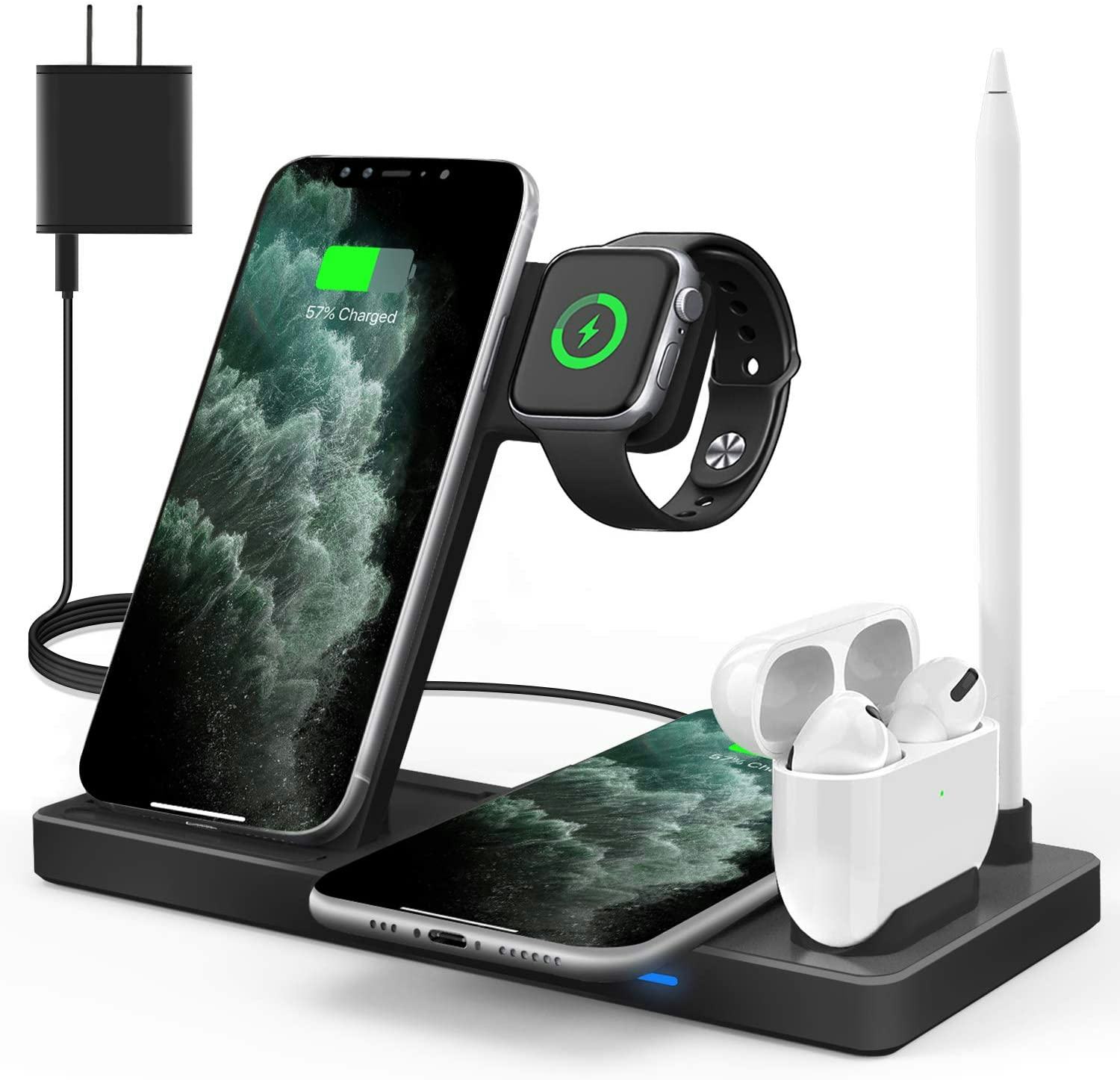 Here is one wireless charging pad that'll juice up two phones, your watch, earbuds, and stylus all at the same time. It'll help reduce your bedside clutter from five chargers down to one, and it's compatible with iPhones and accessories as well as Android phones that are capable of Qi wireless charging.