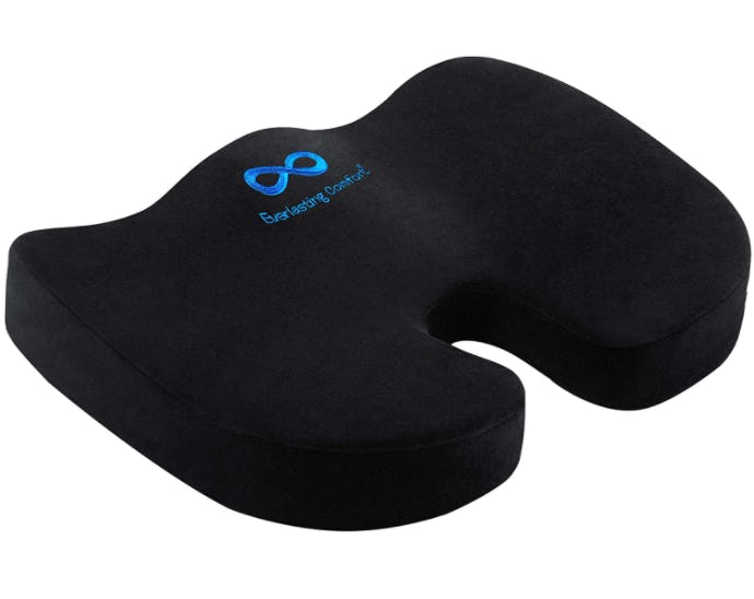 People who drive for a living or work at a desk and experience soreness are raving about this seat cushion. It's made of thick, supportive memory foam that helps relieve pressure from sitting in a chair — and it's designed so your coccyx bone floats in the middle (thanks to the U-shaped construction). Plus, it's available in five colors.