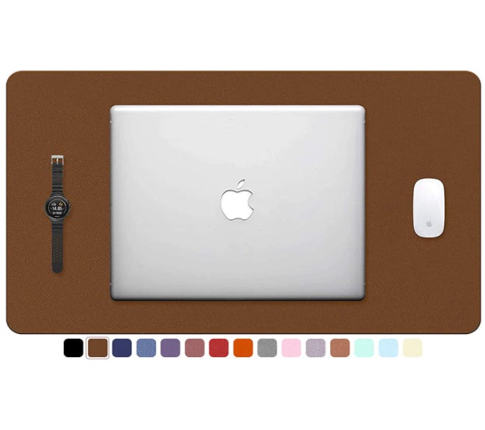 Need a mouse pad? Go big! This desk pad organizes your work space, creates a texture and surface that's perfect for pens, and eliminates the need for a mouse pad. It comes in 14 colors, is made with faux leather and suede, and looks great. Reviewers almost always give it five stars.