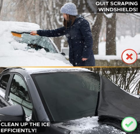 How often do you start your day huddled in a cold car waiting for the windshield to defrost so you can see to drive? Put this durable cover over the windshield when you park the car, and you'll never have to do that again. It's fully waterproof, so it provides a shield to keep ice from forming — and it lets you pull the snow right off. Choose from two sizes for the best fit for your vehicle.