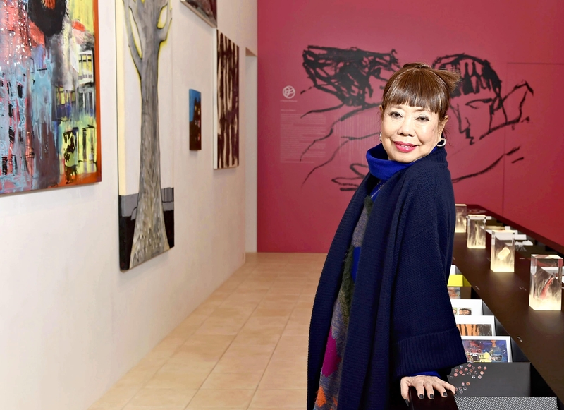 Many of Koshino's works blend art and fashion by using her own calligraphy pieces and paintings as motifs. The fashion designer dreamed of becoming a painter from a young age. She is now active as an artist, too.