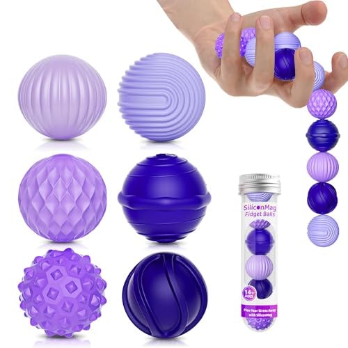 Silicone Magnetic Balls, Fidget Toys, 6-Pack Stress Relief Toys for Adults, Teens, Sensory Toy for Fingers Hands, Quiet Office Desk Toys with Textures, Magnet Fidget Fun Gift (Purple)