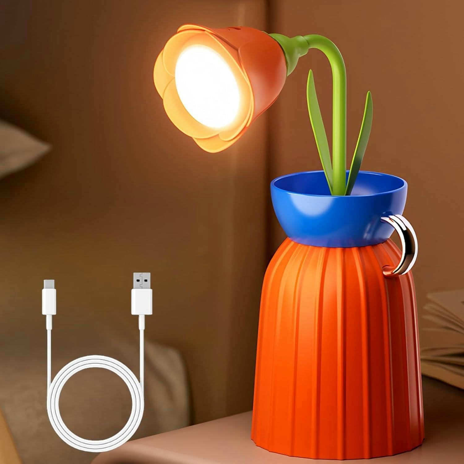 A bendable flower lamp with dimmable lighting options