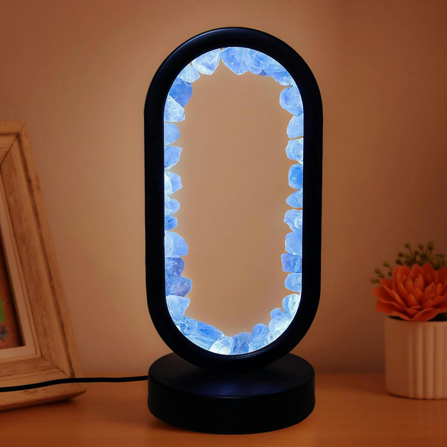 A handcrafted amethyst night-light with 10 brightness levels