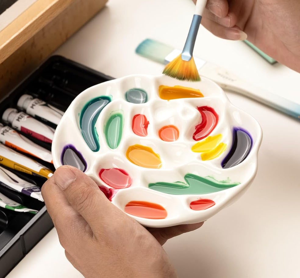 Perfect for any artist, this ceramic paint palette is ideal for smaller works at just 6 inches. Compared to plastic palettes you’ve probably owned, this one is so much sturdier. Plus, since it’s dishwasher-safe, it’s a breeze to wash. It’s great for watercolor, gouache, acrylic, oil, and tempera paint, and it has 21 mixing wells of different sizes.