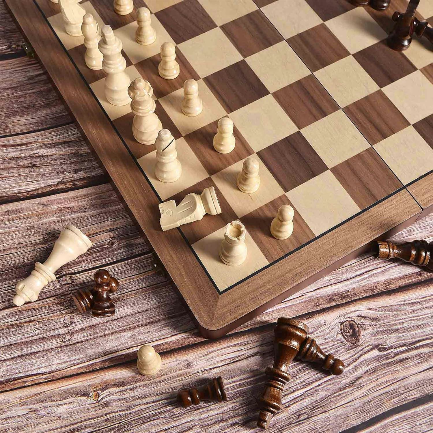 A 15-inch magnetic wooden chessboard that earned 4.8 stars overall