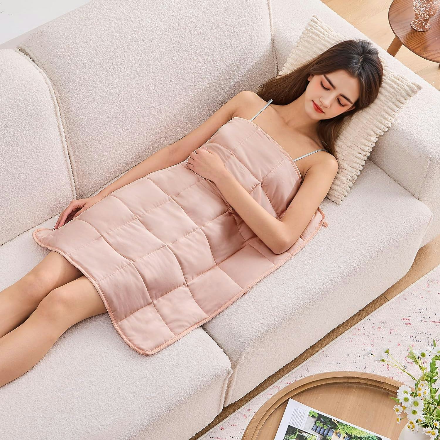 A weighted lap blanket for portable self-care