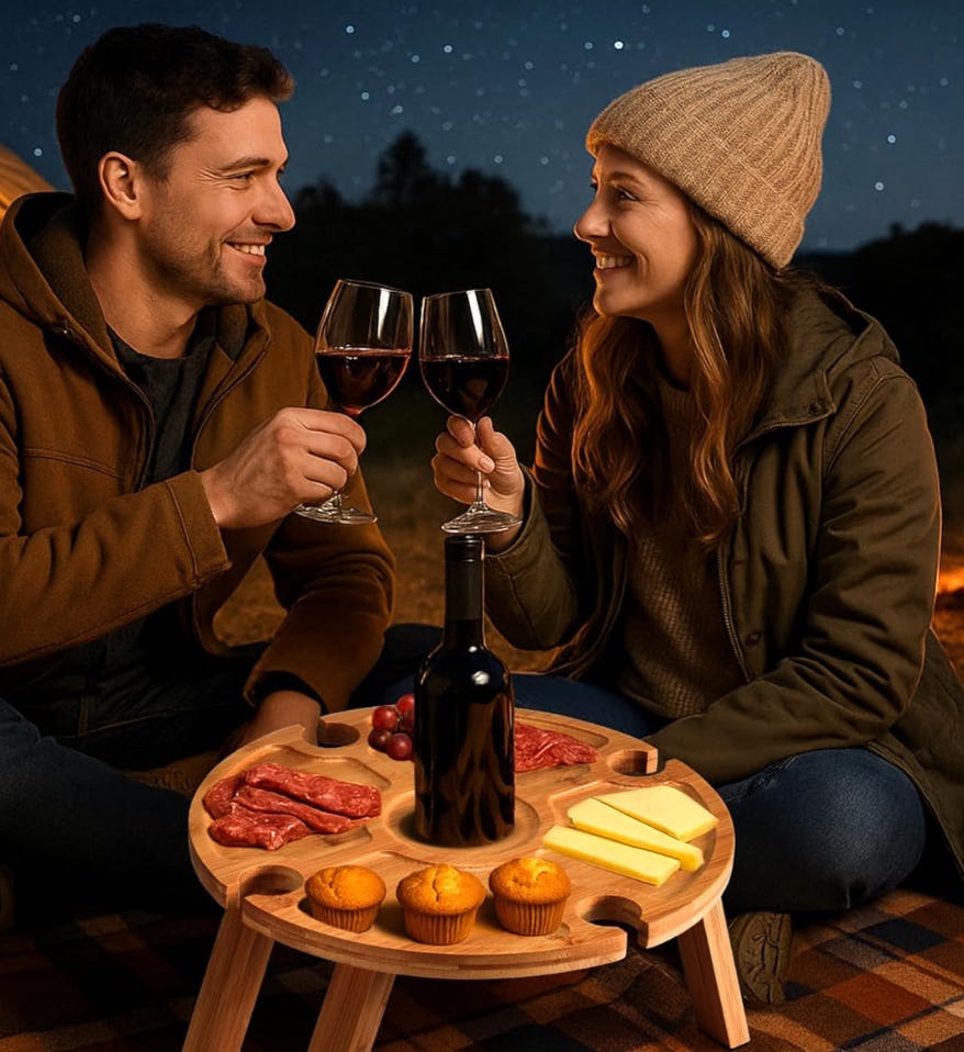 Impress a date or your buddies when you bring this foldable picnic table along to your next outdoor snacking adventure. The low-profile wooden table is compact and lightweight, and the legs easily fold. It has a spot in the middle to hold a bottle of wine, as well as four cup holders for stem glasses.