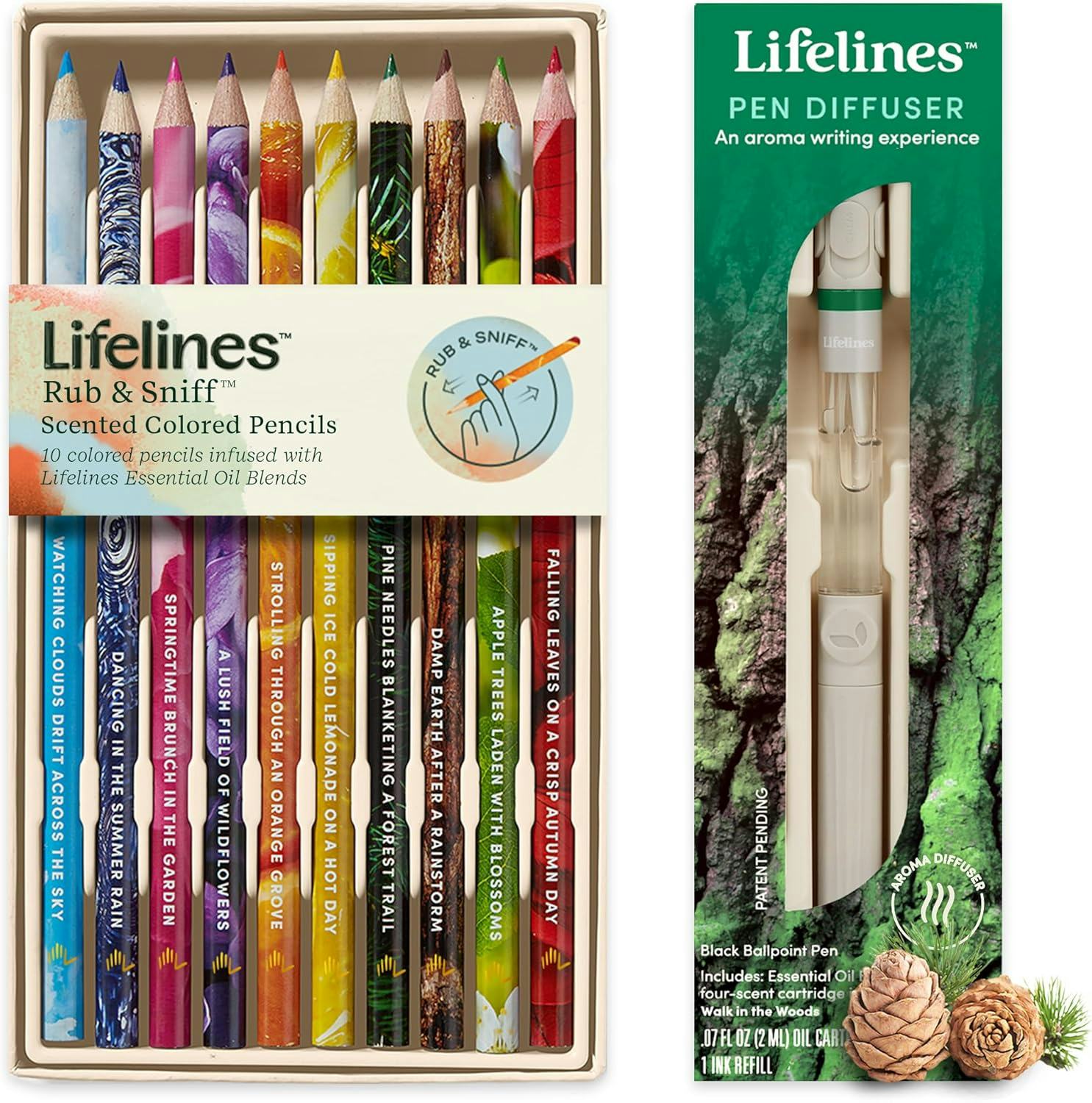 A lightly scented colored pencil & pen diffuser set