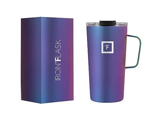 IRON °FLASK Grip Coffee Mug - Leak Proof, Vacuum Insulated Stainless Steel Bottle, Double Walled, Thermo Travel, Hot Cold, Water Metal Canteen - Aurora, 16 Oz - Classic Bottom