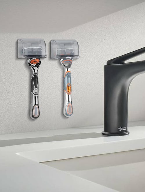Mount these plastic holders onto smooth surfaces like tile or glass using the included adhesive stickers, then use them for your razors. The waterproof cover will protect the blade, though it’ll open automatically for access when you pull the razor forward. Two holders come in the set.