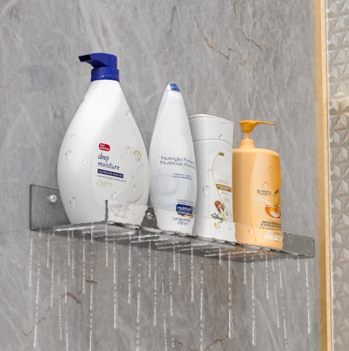 These floating shelves have drainage built into the bottoms, allowing water to flow right out — this makes them a suitable option for a shower or other areas that will get wet. The four clear shelves can be installed in various ways (including a no-drill, adhesive hook option), depending on your setup.