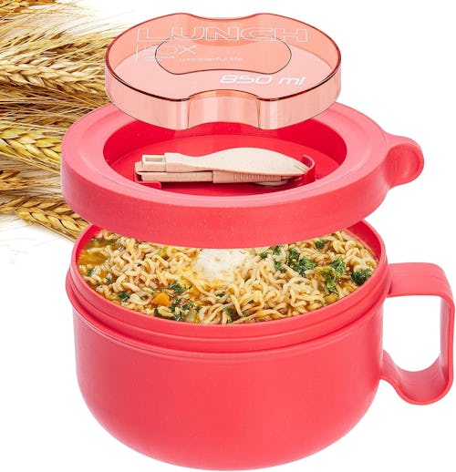 You can warm up pretty much any food in the microwave using this soup mug that holds a whopping 29 ounces. The lid has a steam release vent for splatter-free heating, and there is a built-in fork so you always have one when you need it. This pick is dishwasher safe.