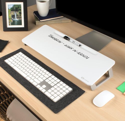 Use this dry erase board as a handy spot to jot down notes, to-dos, and other important information — it’s also magnetic. It’s designed for use at your desk since the elevated design allows your keyboard to slide directly underneath it. A felt keyboard pad, dry-erase marker, and microfiber towel for erasing are also included.