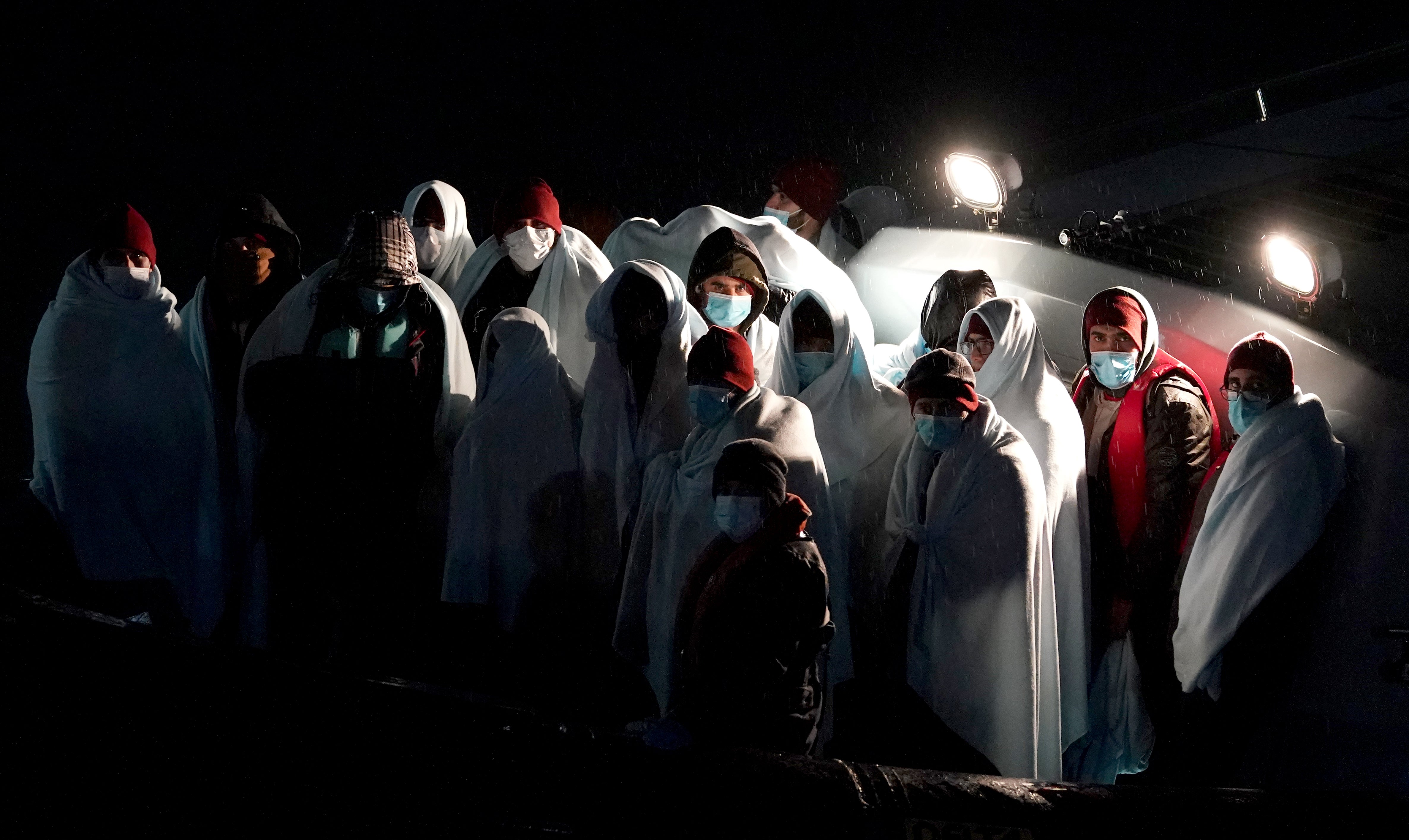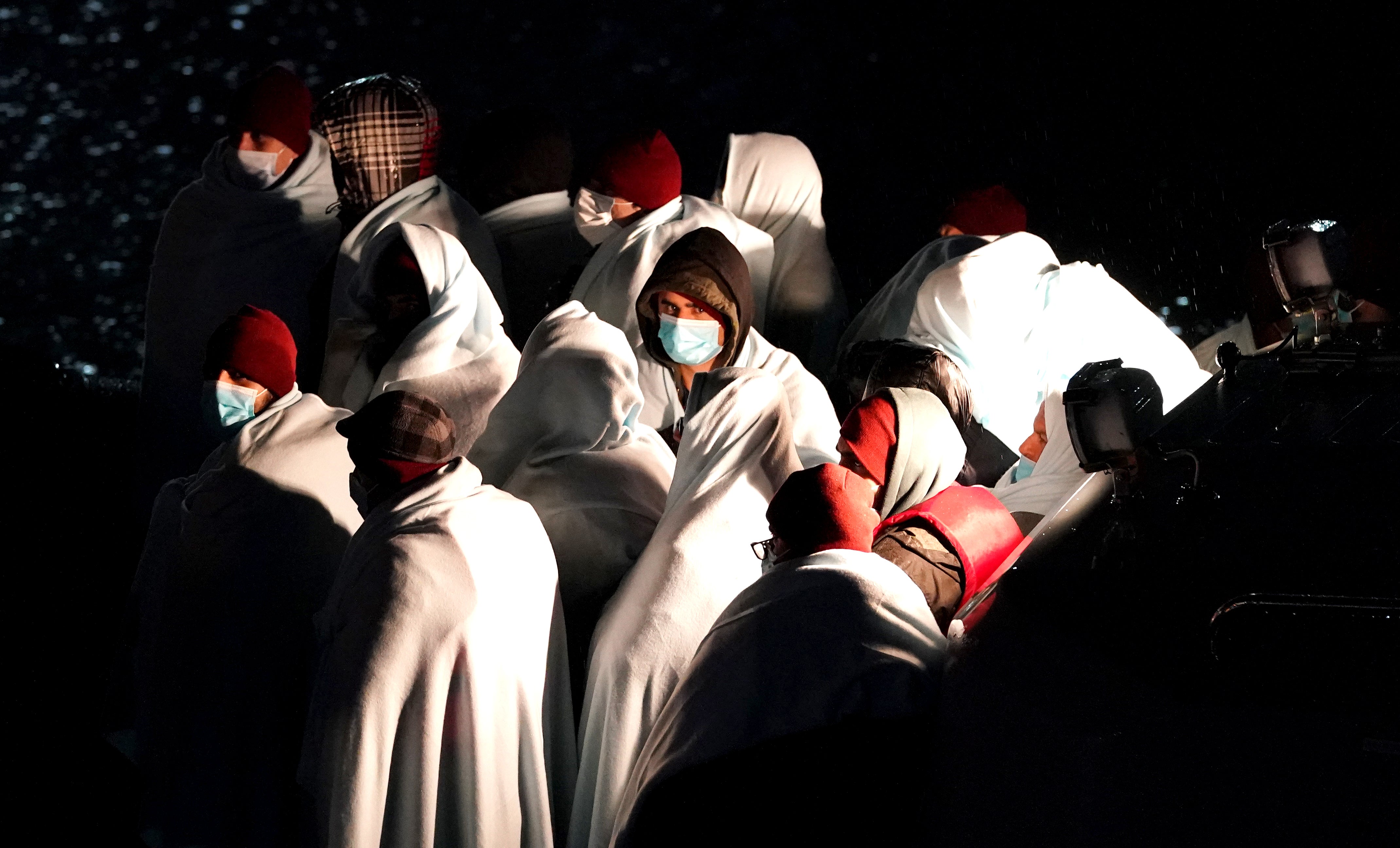 Images taken by the PA news agency show UK agencies bringing the group of people in shortly before 1.30am on Christmas Day.