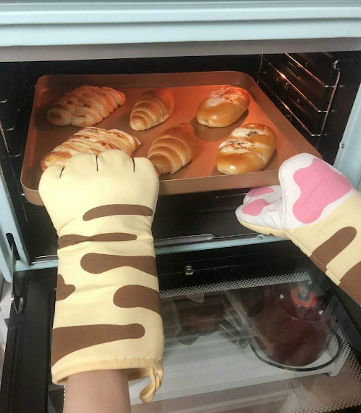 These Heat-Resistant Cat Oven Mitts That Are Seriously Too Cute
