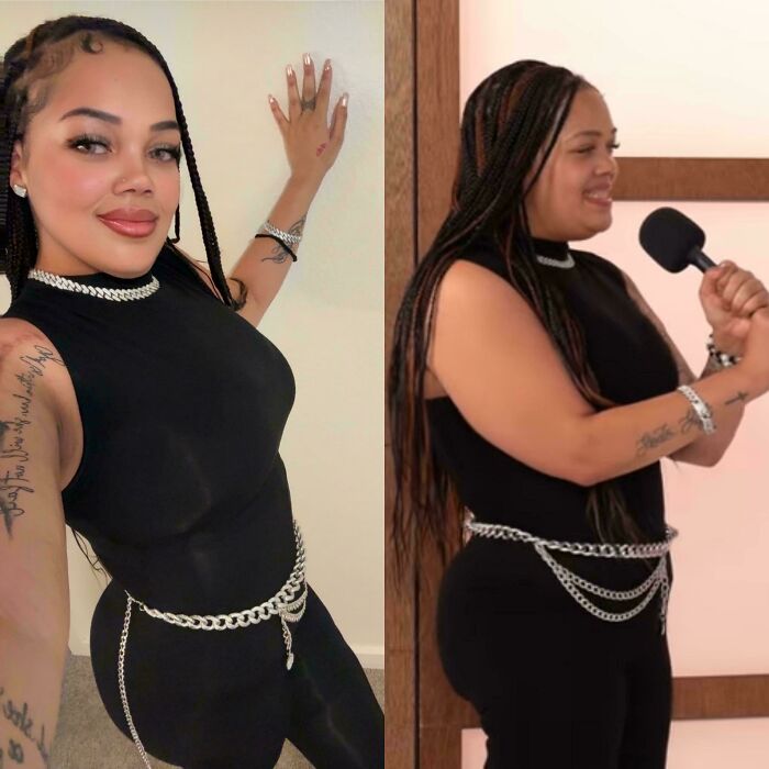 #24 She Is Notoriously Known For Editing Her Ig Photos. Pic On The Right Is Last Weekend, Pic On The Left Is What She Posted Today