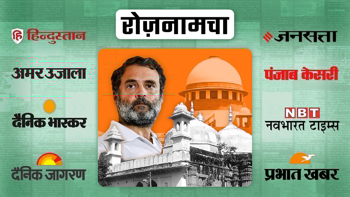 हिंदी के प्रमुख अख़बारों ने आज एक नहीं अलग-अलग ख़बरों को अपनी पहली सुर्खी बनाया है. किसी ने राहुल गांधी की सजा पर सुप्रीम कोर्ट द्वारा रोक लगाए जाने तो किसी ने सुप्रीम कोर्ट द्वारा ज्ञानवापी मस्जिद के एएसआई सर्वे पर रोक लगाने से इंकार को प्रमुखता दी है. वहीं, कुछ अख़बारों ने नूंह में प्रशासन द्वारा अवैध निर्णाण गिराए जाने तो कुछ ने मणिपुर में भीड़ द्वारा फिर से हथियार लूटने को पहली सुर्खी बनाया है.