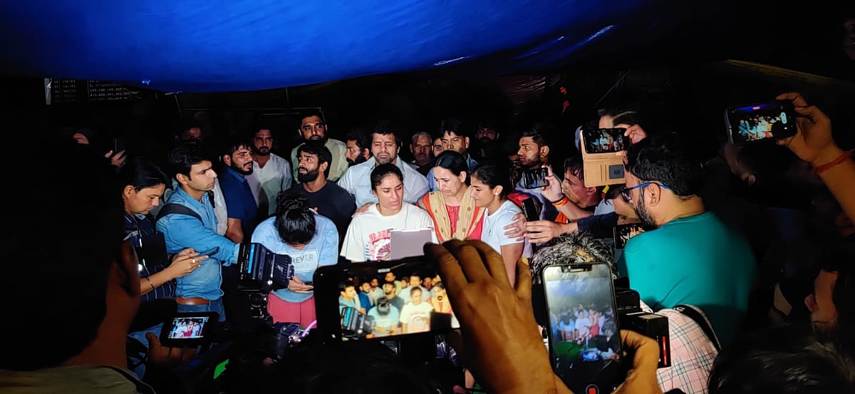 करीब आधे घंटे बाद पुलिस ने कुछ पत्रकारों के अंदर जाने दिया. जिसमें हम भी शामिल थे. अंदर हमने देखा कि भारी पुलिस बल और कुछ ही मीडियाकर्मी मौजूद थे. साक्षी मलिक, विनेश फोगाट और संगीता फोगाट रो रही थीं. इसके बाद उन्होंने देर रात ही प्रेस कांफ्रेंस की.