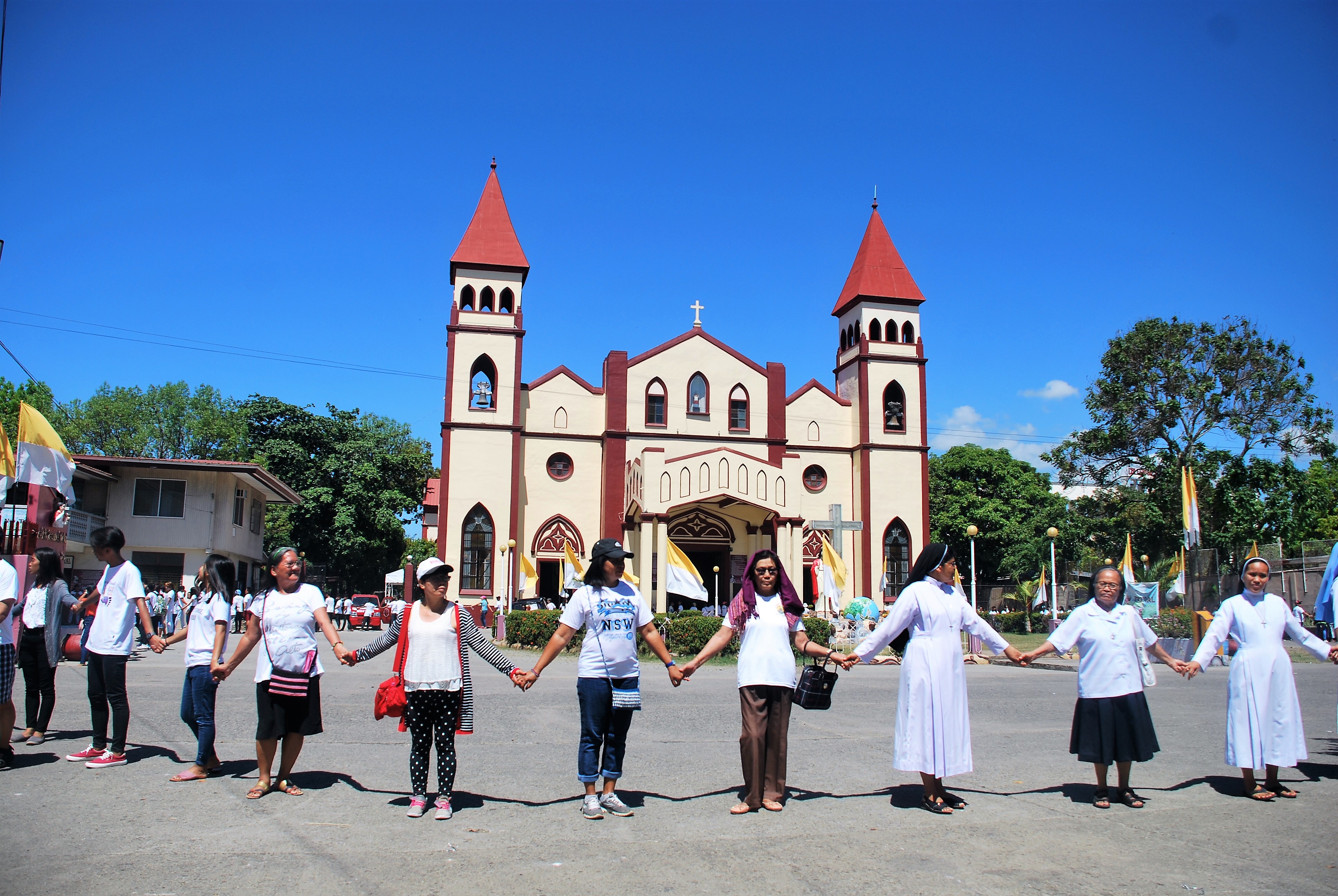 SAN CARLOS CITY, Philippines – Some 7,000 members of the religious sector and the youth formed a “human chain” on Monday, April 22, which is also Earth Day, to oppose the construction of a 300-megawatt coal-fired power plant here.