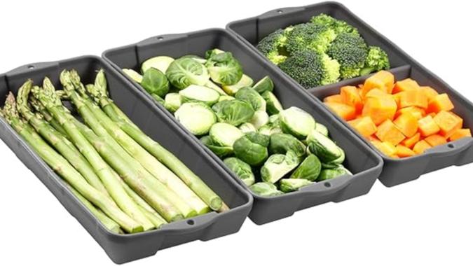 With this nonstick bakeware set, you can use your baking sheets to prepare multiple foods at once, without them touching. The food-grade silicone dividers can separate the ingredients. Plus, you can use them to stagger bake times if needed. After preparing your meal, you can put the leftovers directly into the fridge in these dividers. They’re easy to clean, too, and have a special coating to prevent sticking.