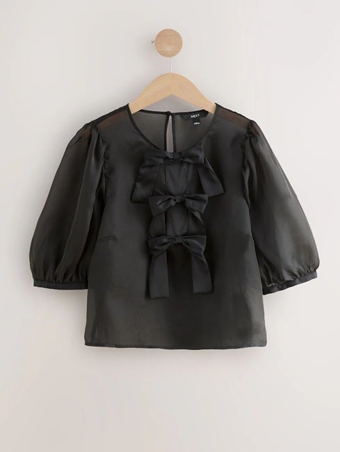 Next Black Sheer Puff Sleeve Bow Blouse, £34