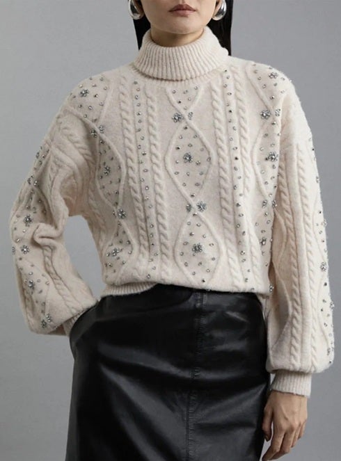 Karen Millen Wool Blend Embellished Cable Knit Jumper, £83.00 (was £139)