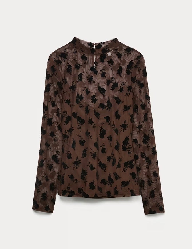She suggests anchoring sheer pieces with “clean lines [like] a structured blazer over a fluid sheer blouse, or sleek hair and minimal make-up.”