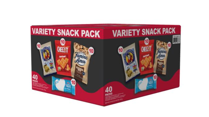 The variety snack pack might not have the catchiest product name, but this new arrival has all of your savory and sweet snack-time favorites at a bargain. Inside every box are 10 individually packaged bags of Pirates Booty, 10 Cheez-its, 10 Famous Amos chocolate chip cookies and 10 Rice Krispies Treats.
