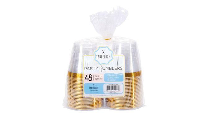 Tableluxe Premium Gold-Rimmed Clear Plastic Tumblers