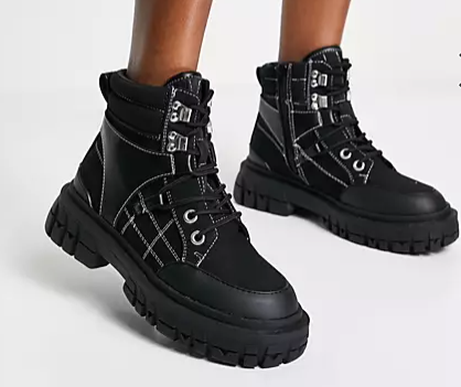 ASOS DESIGN Acorn canvas hiker boots in black