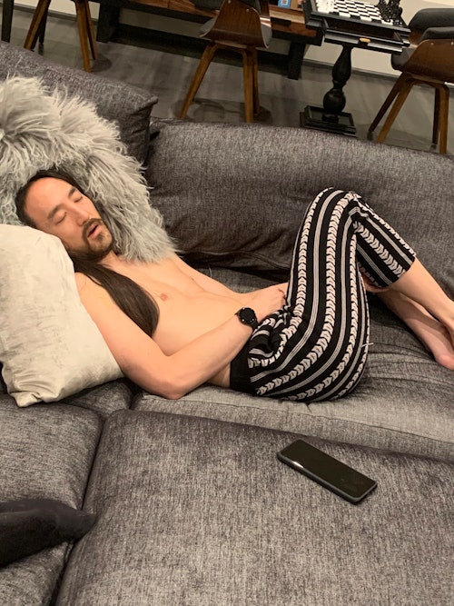 I’ve been watching this show called Upload. Love my sci-fi. Later on, I’m going to do a little workout and then do some more live content in the house and then have some dinner, possibly do a cold plunge. And then breath work and then maybe catch up on that show and go back down to the studio. Nowadays the studio is great because of the feeling of freedom to just experiment and toy with sounds. Because usually when I’m in the studio, I’m like, “Okay, I have to get this done, this done, this done.”