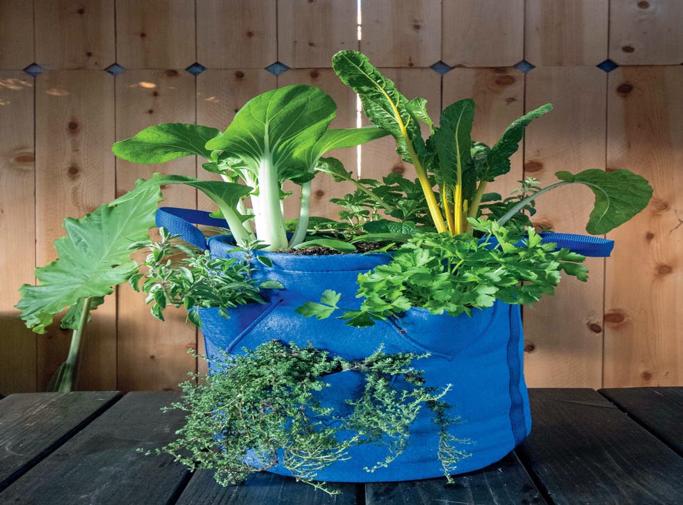 Create your own stir-fry ready bag of veg and greens. “I have one now where you can grow sage, thyme, oregano, coriander and basil – then on the top I have Asian greens including pak choi, Asian mustard, so I could make a quick stir fry simply from that bag, which takes up very little space. If you’re a small-space gardener, that’s a really good bet. That bag would take around 30 litres of compost.